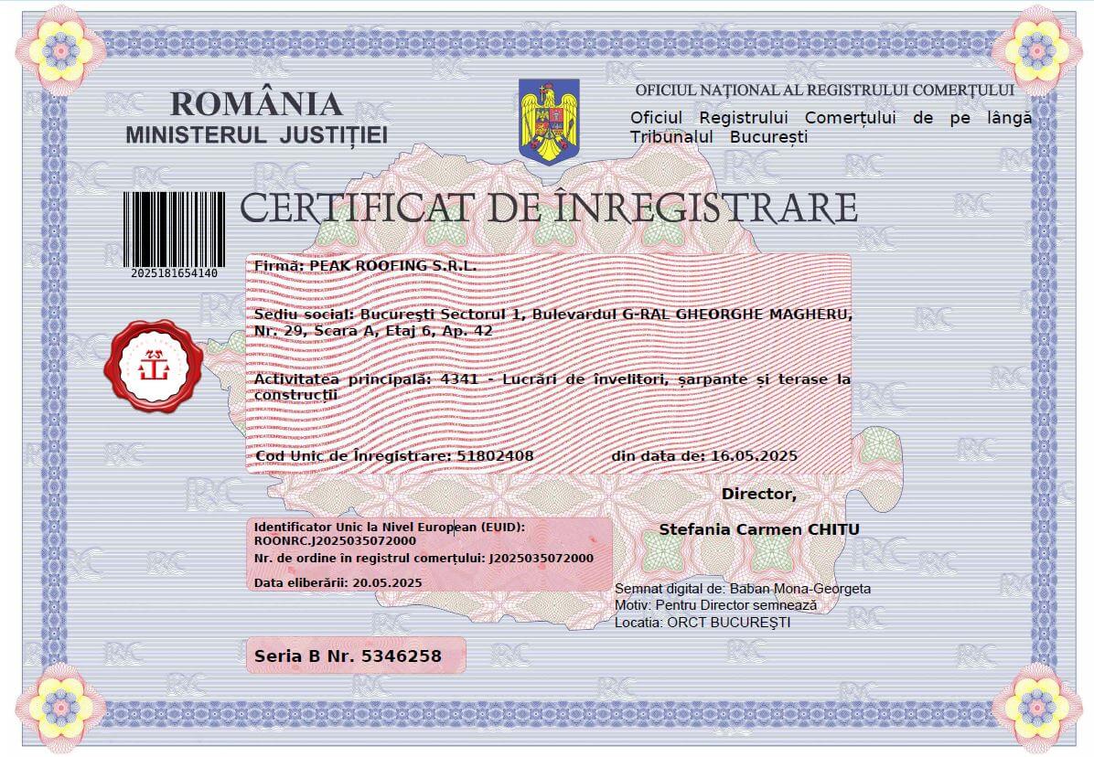 Firma: Peak Roofing S.R.L.